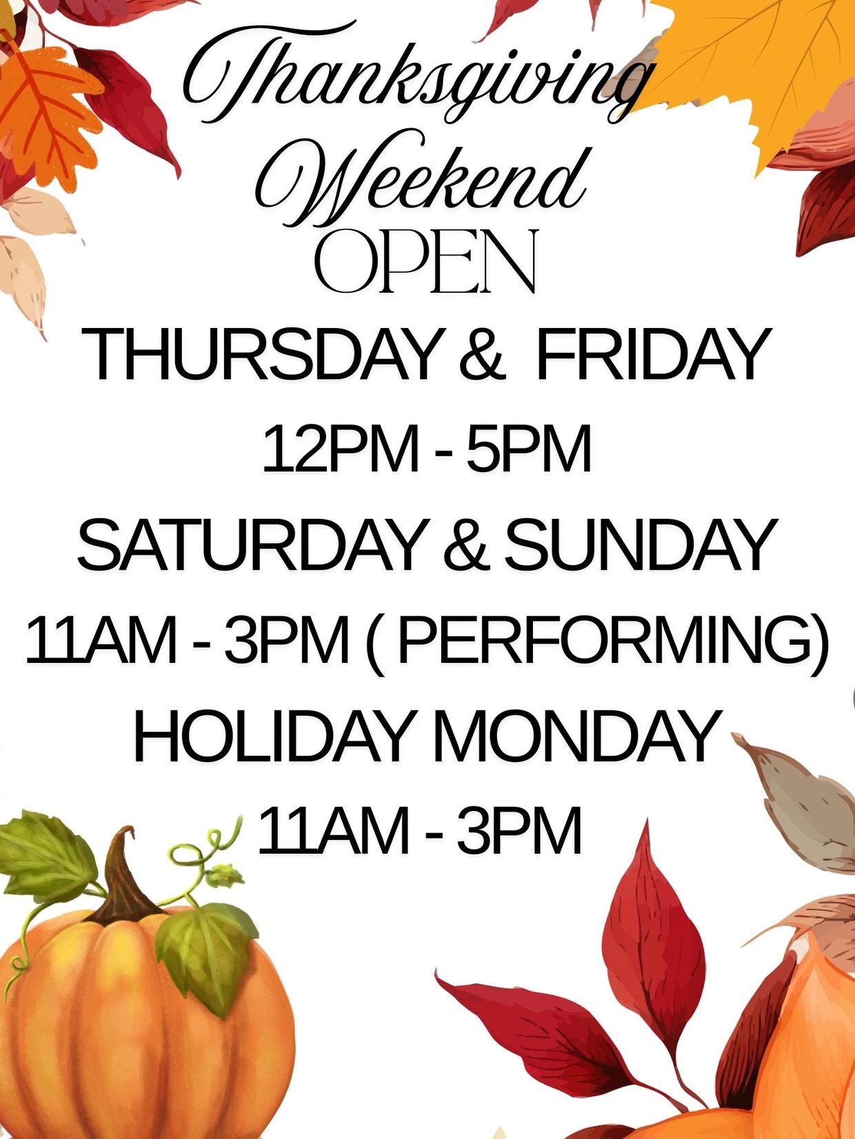 Please Note: Wednesday August 27th Open 1pm - 5pm